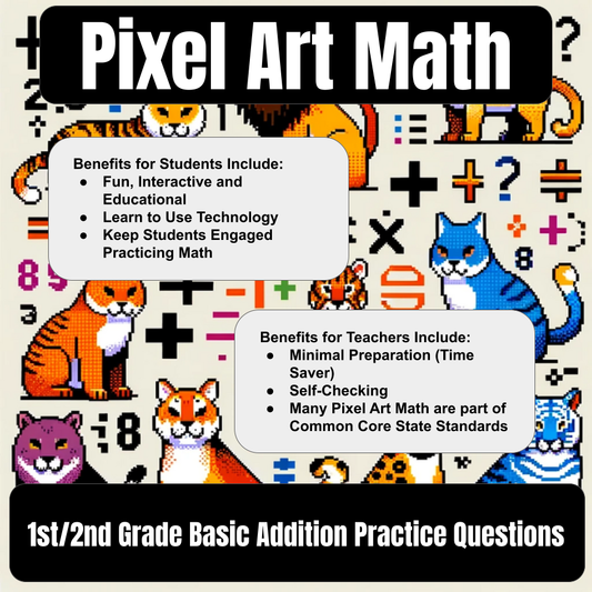 Pixel Art Math for Google Sheets (Addition 1 digit + 1 digit) Digital Format