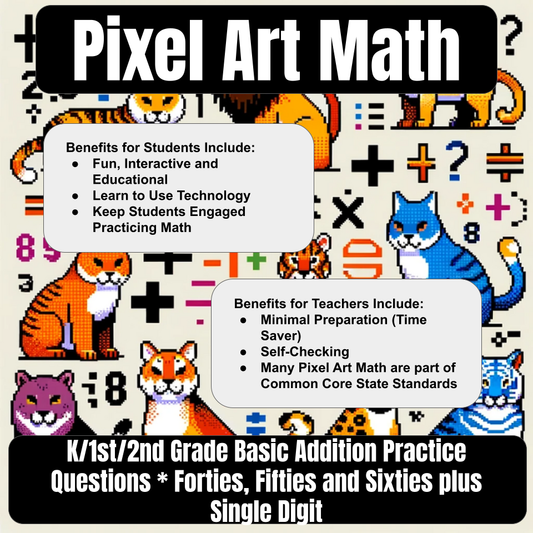 Pixel Art Math 2 Digit(10s,20s,30s) + 1 Digit Addition for Google Sheets