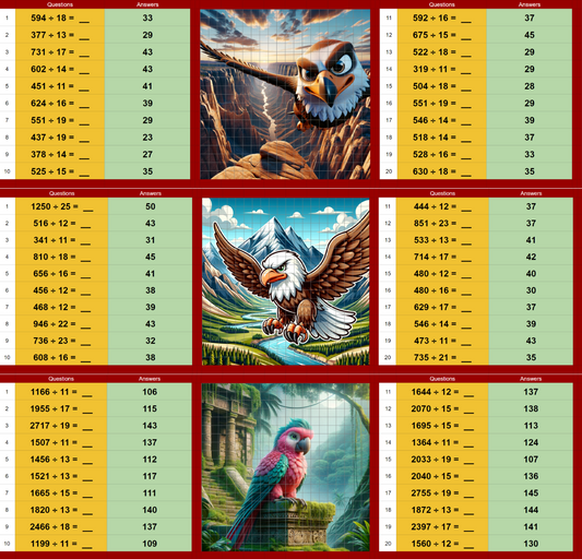 5th Grade Pixel Art Math Long Division | 6 Beautiful Pixel Art | 120 Questions