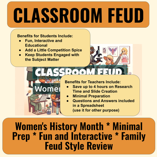 30 Women's History Month Family Feud Style Questions and Answers Template for Google Slides